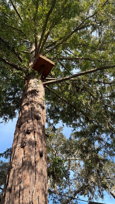 Let us know if you have a tall owl platform tree located on your property next to the street or your driveway. The height of the visible trunk should be as high as the top of a telephone pole. The area must be level for a cherry picker access, and clear of power lines.