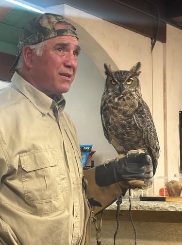 Thanks to Master Falconer Antonio Balestreri for his amazing educational presentation on owls and showing us in person his four rescued owls.