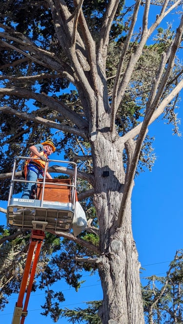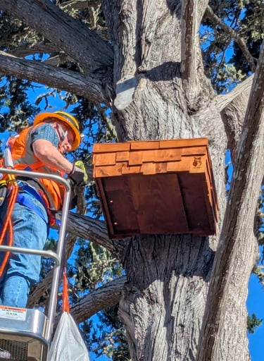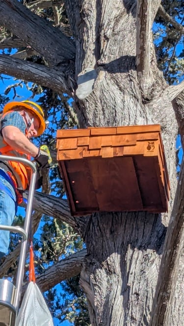 Let us know if you have a tall owl platform tree located on your property next to the street or your driveway. The area must be level for a cherry picker access, and clear of power lines.